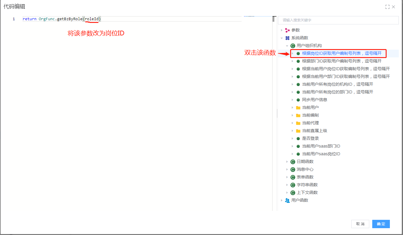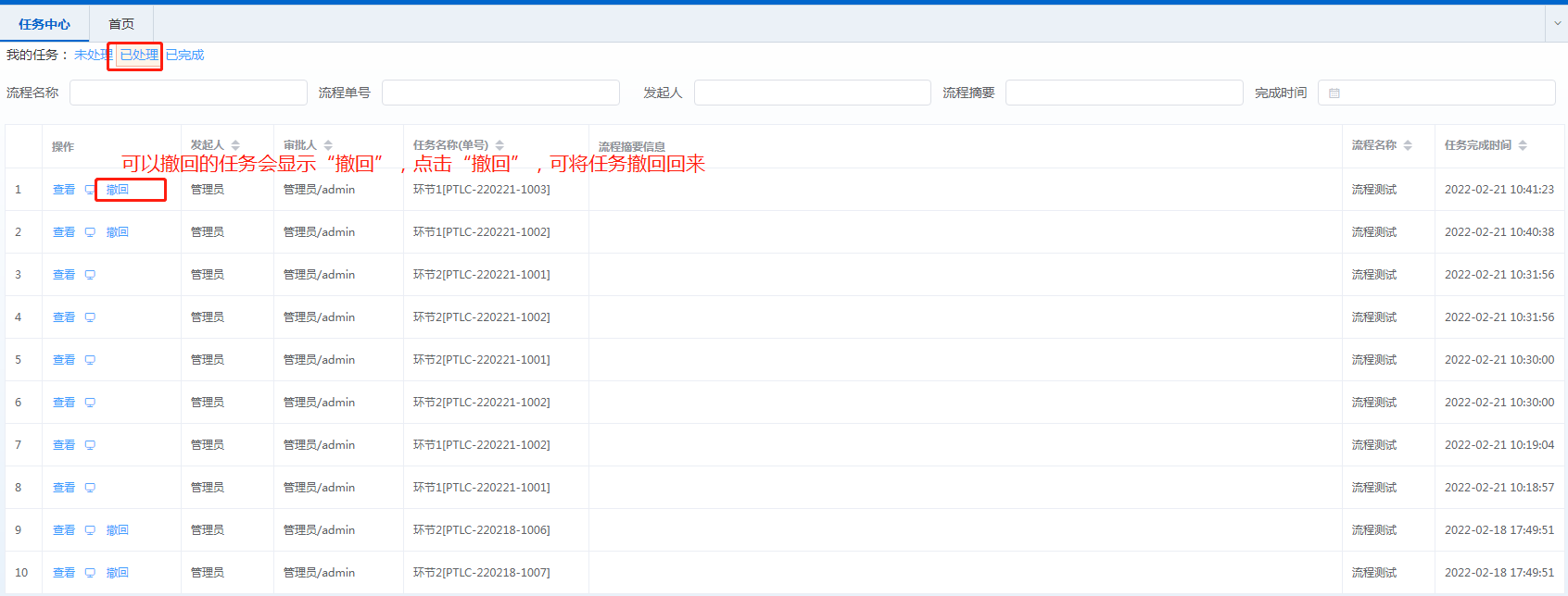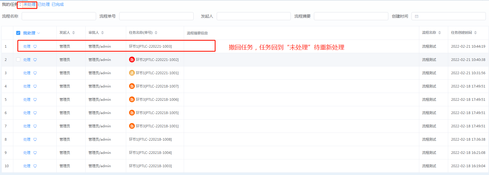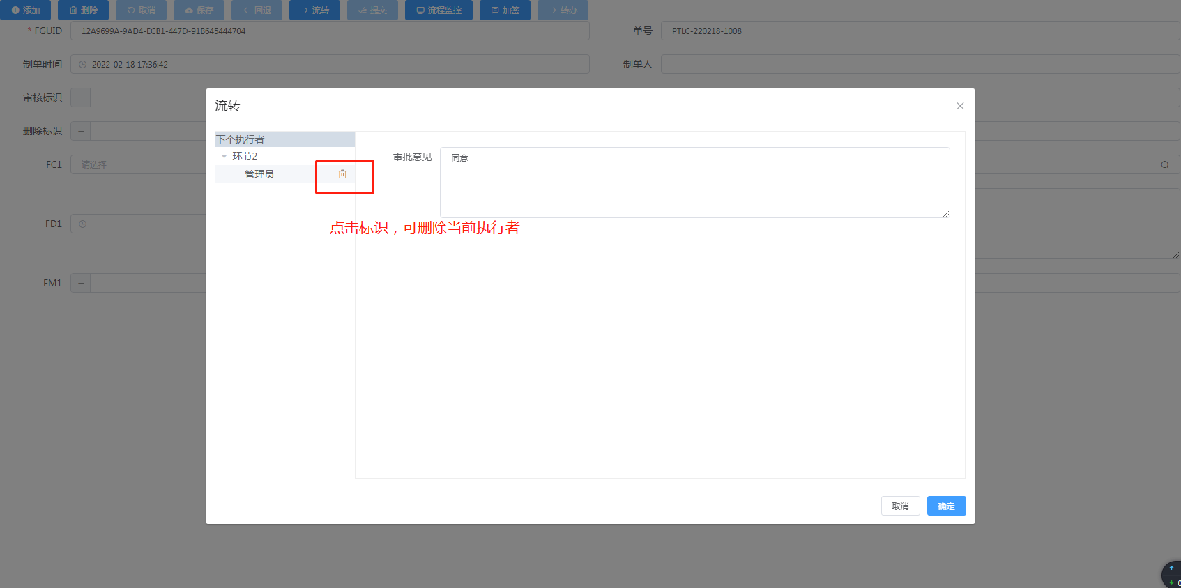 ## 流程 ### 一、绘制流程  ### 二、基础属性 #### 1、名称 默认“环节”,修改后配置端前端均按修改后名称显示 #### 2、桌面视图单号激活  #### 3、绑定桌面视图  - 桌面视图的工具条需要添加“流转”或者“提交”按钮以及“流程监控”,其他按钮视情况而加 - 流转:点击“保存”后,“流转”按钮方可点击,点击“流转”弹出流转确认框,点击弹框“确定”框后,流转当前环节 - 提交:“提交”=“保存”+“流转”,点击“提交”直接保存并流转当前环节 - 流程监控:显示流程的审批记录和流程图   #### 4、允许批量处理 勾选“允许批量处理”,当前环节的处理人打开任务中心“未处理”,当前环节任务会出现复选框,可以勾选批处理    #### 5、允许撤回 默认勾选“允许撤回”。勾选后,流程流转至下一环节后,在任务中心“已处理”可以撤回该任务,回到“未处理”任务待重新处理。 - 撤回任务的前提是下一环节的执行者没有打开单据    ### 三、活动设置 #### 1、活动办理人 活动办理人即当前环节的执行者,需返回用户的机构编码。首环节的活动办理人为当前制单人无需配置  常用活动办理人配置: - 固定人员:return '编制A,编制B' - 取业务表字段:return record.get('字段ID')  - 取直属上级:return OrgFunc.bzSuperId()  - 取岗位人员:OrgFunc.getBzByRole('岗位ID') 注:SaaS版该函数仅取当前公司对应岗位人员  #### 2、办理方式 办理方式,有独占办理、并行办理、顺序办理,默认独占办理。 - 独占办理:只能有一个人审批,默认率先处理,即若多人审批,谁先处理流转完单据,流程流转至下一环节,其他人就无法流转 - 顺序办理:多人审批,按照一定顺序来处理此任务,顺序是由执行者表达式里返回的顺序或者在流转对话框中选择执行者的顺序来确定的,执行者按照先后顺序收到单据,只有前一个处理完后下一个才能收到单据,直到字后一个处理完流程才流转至下一环节 - 并行办理:多人审批,需实际人数(环节办理人数x比重)都流转完单据,比重默认100%,即全部人都要处理,若环节办理人数x比重存在小数,人数向上取整  #### 3、紧急程度 紧急程度,有一般、加急、紧急、特急,默认一般。用于任务中心展示该流转当前环节的紧急程度。如下图当环节紧急程度为“加急”时,当前环节办理人任务中心收到该条任务时,“任务名称”前会有橙色的“急”字,“紧急”为深橙色的“急”字,“特急”为大红色的“急”字,“一般”不显示“急”字。  #### 4、删除活动办理人 勾选后,“流转”弹框的执行者可选择性删除  #### 5、超时自动处理  “超时自动”默认“否”,选择“是”,填写“超时时间”(单位:分钟),超过“超时时间”设置的时间后,当前环节的任务自动流转。 “超时条件生效表达式”:若需要根据条件产生,可以在这里配置条件表达式(该表达式只能返回布尔值:true or false),默认为“true”。即满足表达式条件的情况下超出时间方可自动处理。 #### 6、下个环节额外办理人 ### 四、回退设置  (1)回退模式 - 缺省上一级:回退到上一环节 - 经过的任意一级:前端会显示经过当前环节之前的所有环节,由当前活动办理人选择要回退到哪一环节 - 经过指定环节:要选择“回退指定环节”,“指定环节”会列举经过当前环节之前的所有环节,支持单选、多选 - 首环节:回退至流程的首环节 (2)返回方式 - 重新流转:单据重新流转 - 原路返回:单据原路返回到回退时的环节 - 原路返回或重新流转:前台选择重新流转或原路返回 ### 五、转办设置 当前环节执行者将任务转移给其他人处理(非流转至下一环节)即为转办。转办非流转,转办虽然也把任务流给了其他执行者,但是活动环节仍为当前环节 - 数据工具条需添加“转办”按钮 ### 六、加签设置  - 环节任务执行者在任务处理前或任务处理后,添加本环节额外任务执行者即为加签,加签任务可分为:前加签和后加签。数据工具条需添加“加签”按钮 - 加签:办理人只能做加签处理填写意见,不能处理单据 - 前加签:加签处理后返回加签者处 - 后加签:加签处理后不返回加签者处 ### 七、事件进度条  是否需要:选择“是”时启用进度条 超时时间:超过设定时间后,抛异常;单位“秒”,为“0”时默认30S - groov脚本示例: ```groovy import com.zhc.eap.util.HttpVariableHolder import com.zhc.eap.utils.WebSocketUtil import com.zhc.eap.websocket.WebSocketClient //实际业务逻辑方法 void gvBeforeMethod_arscE76r(Map<String, Object> map){ WebSocketClient client = getWsClient(); JSONObject wsMsg = new JSONObject(); sendMsg(client,wsMsg,0.1); Thread.sleep(2000); sendMsg(client,wsMsg,0.2); Thread.sleep(2000); sendMsg(client,wsMsg,0.3); Thread.sleep(2000); sendMsg(client,wsMsg,0.4); Thread.sleep(2000); sendMsg(client,wsMsg,0.5); Thread.sleep(2000); sendMsg(client,wsMsg,0.6); Thread.sleep(2000); } //获取socket连接 WebSocketClient getWsClient(){ HttpServletRequest request = HttpVariableHolder.internalHttpServletRequest(); String clinetSocketId = request.getParameter("wsid"); //判断是否有发起socket连接 if (clinetSocketId == ""||clinetSocketId==null ){ return; }else{ return WebSocketUtil.createP2PWebSocketClient(request, clinetSocketId); } } //发送消息 void sendMsg(WebSocketClient client,JSONObject wsMsg,double num){ if(client == ""||client==null){ return; }else{ wsMsg.put("progress",num); client.sendMessage(wsMsg); } } ```  - 效果展示