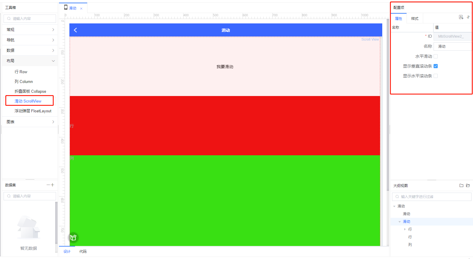 ## MbScrollView 滑动 将内容放置在滑动中,内容超出布局可滚动查看。  ### 属性 | 属性 | 说明 | 类型 | 默认值 | |--------------------------------|---------|---------|-------| | scrollX | 水平滚动 | boolean | false | | showsVerticalScrollIndicator | 显示垂直滚动条 | boolean | true | | showsHorizontalScrollIndicator | 显示水平滚动条 | boolean | false | ### 事件 无 ### 函数 | 函数名 | 说明 | 参数 | |-----|----|----|